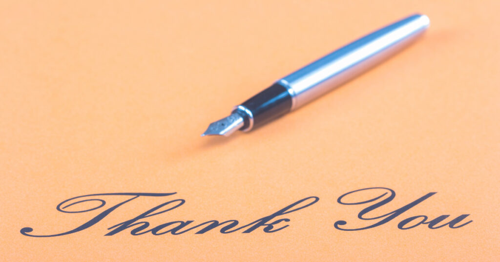 まずは「ありがとう」の感謝の気持ちを込めた文章です。
