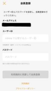 会員登録画面があらわれるので、ユーザーIDとパスワードを入力します。
