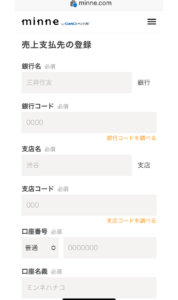 作品の売上げが振り込まれる口座です。minne登録の本人確認の意味合いもあるので早々に登録するのがいいと思います。ゆうちょ銀行も登録できます。