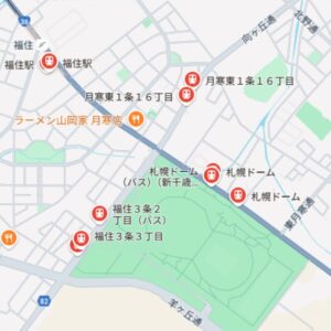 最寄り駅は国道36号線の地下鉄福住駅(徒歩7分)、バス停は36号線と福住桑園通りにあります。